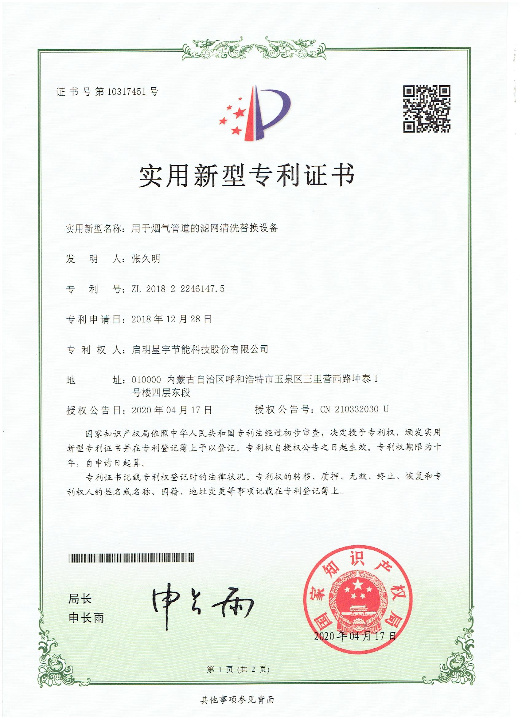 用于煙氣管道的濾網(wǎng)清洗替換設(shè)備實(shí)用新型專利